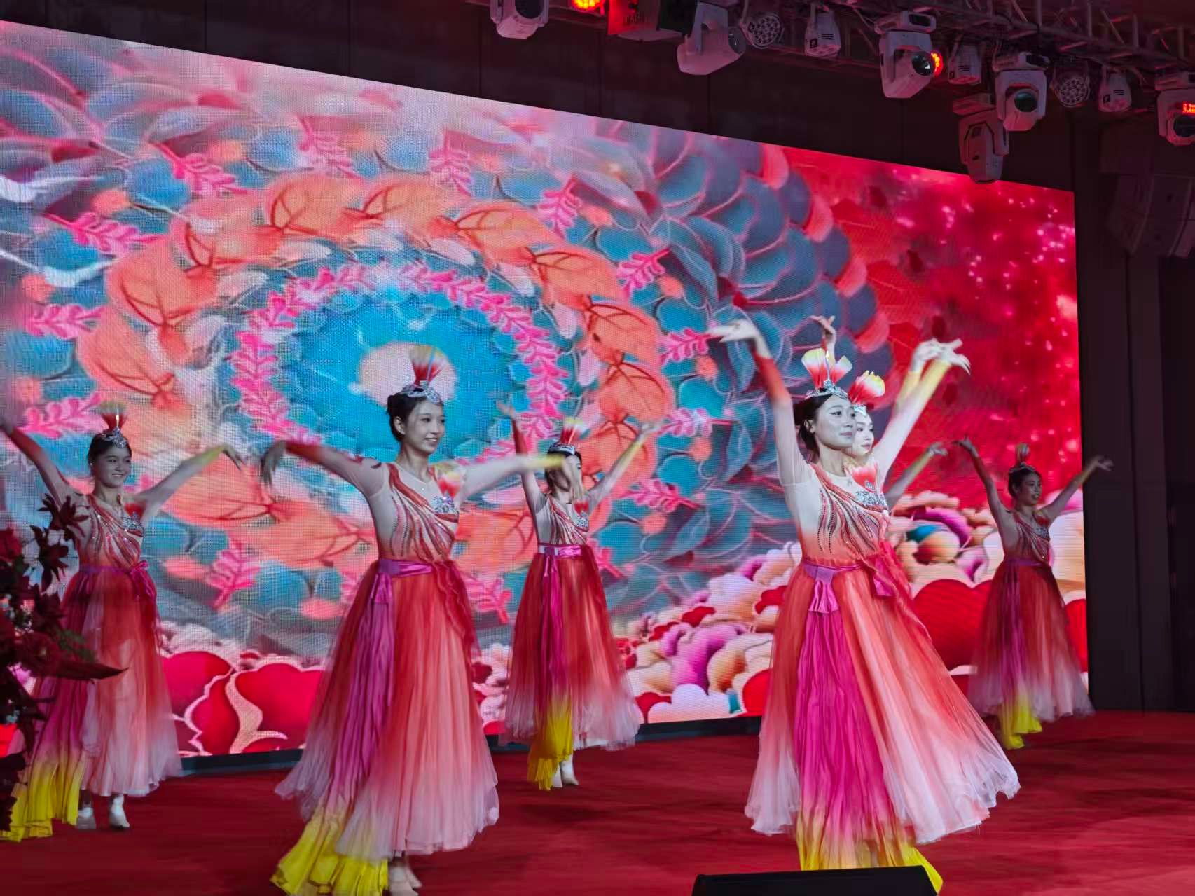 晚会分“桑梓同源”“红色薪传”“荆楚风采”“国风雅韵”四大篇章,学院师生以专业实力架起文化桥梁:郑碧松、匡豆豆等教师编导《万紫千红》《水韵荆楚》,将乡愁意象与荆楚风情注入舞台;陈信任、余金荣等师生献唱《彩云归·天涯何时共华堂》《我的江汉大平原》,用歌声唤醒地域情感共鸣;大学生舞蹈艺术团、民乐团在《团结就是力量》《乐动国潮》中演绎红色激情与传统新生,让文化厚度与艺术感染力双向迸发。