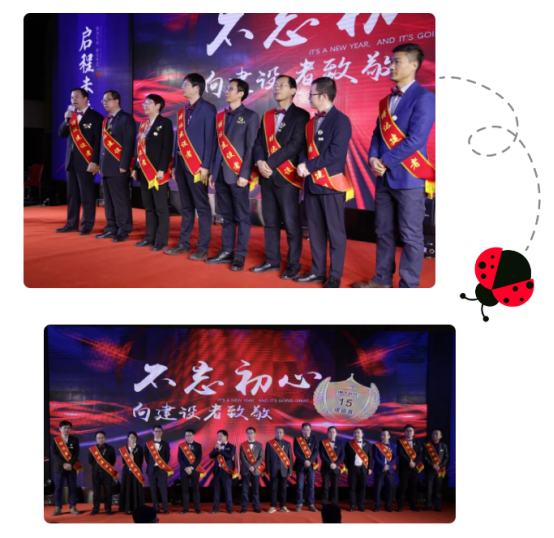 年会上由公司董事长魏小立先生为博达“十五年建设者”、“十年建设者”分别颁发“建设者”勋章。是这些前辈们的奋力拼搏,铸就了博达的点滴成就,这个勋章凝聚了全体员工不懈的努力和辛勤的汗水,也激励着后来的博达人不要停止奋进的步伐。