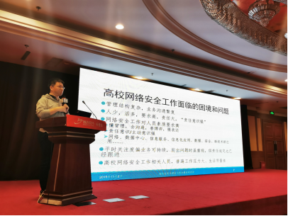 报告主题为《建构以站群系统为核心的高校网络安全防护体系》,探讨如何从网站群的管理、边界防护、数据备份、日志审计、安全治理等几个方面来保障高校的信息安全。