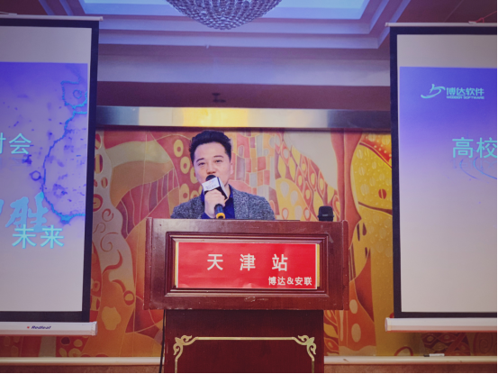 安联恒信天津有限公司总经理艾世一先生致开场词,对各位老师百忙之中来到我们会议现场表示衷心的感谢,博达软件和安联恒信的发展离不开各位老师的鼎力支持。2010年,博达软件网站产品开始在天津市场进行推广,为更好的满足高校信息化建设的需求,博达软件不断创新,从内容到形式,产品线逐渐丰富,围绕高校信息化建设提供产品20余个。截止到今天,博达软件和安联恒信已经成为天津地区极具影响力的厂商和服务商,一路走来,离不开各位老师的信任和支持。