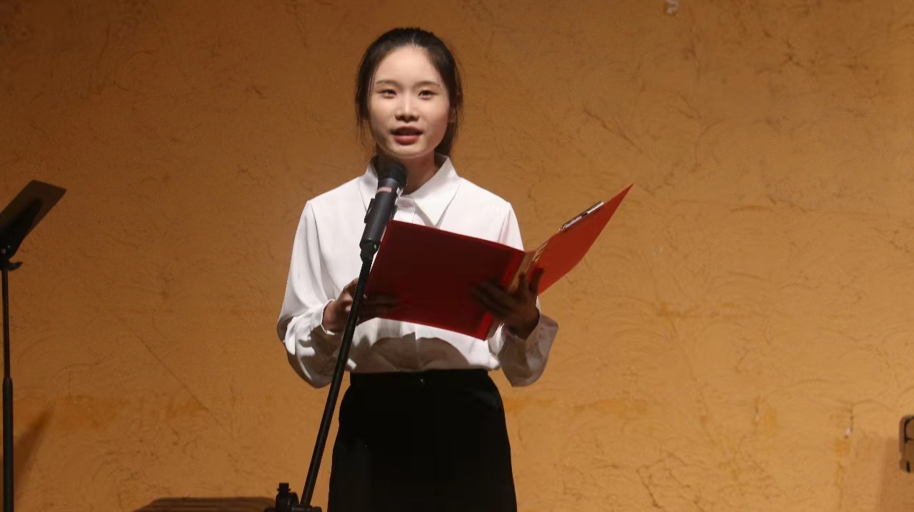 图为老生代表,音乐学2213班刘念发言