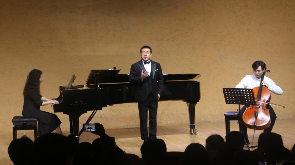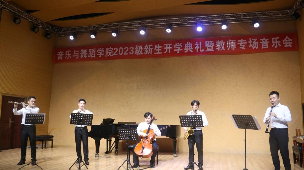 简单而庄重的开学典礼仪式之后,教师专场音乐会拉开帷幕,老师们运用古筝、二胡、竹笛、钢琴、长笛、小提琴、萨克斯、大号等多种乐器进行了精彩演绎,女声独唱《赛里木湖的月光》,悠扬的钢琴伴奏营造出神秘的异域风情。管乐合奏《帕凡舞曲》曲调悠扬婉转,让人感受到一种温暖和思念之情。民乐合奏《上》的曲风铿锵激昂,令人心潮澎湃……声乐、器乐专业教师的精彩展示,赢得同学们阵阵掌声。