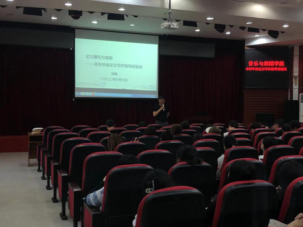 (williamhill英国 张广南)为进一步规范本科毕业论文撰写,提高毕业论文写作质量,6月8日下午,音乐与舞蹈学院音乐系举办2022年第二期教师大讲堂暨本科毕业论文撰写与答辩经验谈。此次讲座由凌崎博士主讲,音乐学系系主任由艳老师担任主持,音乐与舞蹈学院2023届毕业生以及部分非毕业班学生共百余人参加培训与学习。