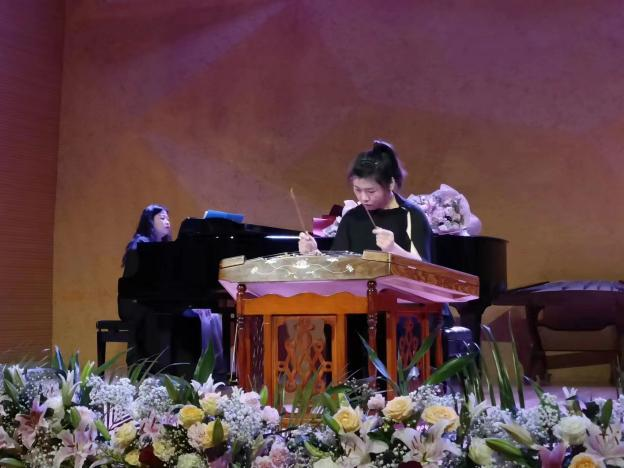 整场音乐会曲目既有传统与当代的名曲,又有扬琴大咖芮伦宝先生和成海华先生创作与改编的新曲;既有独奏、齐奏、重奏,还增加了人声伴唱等表演形式。丰富的表演形式、师生们精湛的演绎赢得了在场领导、老师和同学们的热烈掌声。