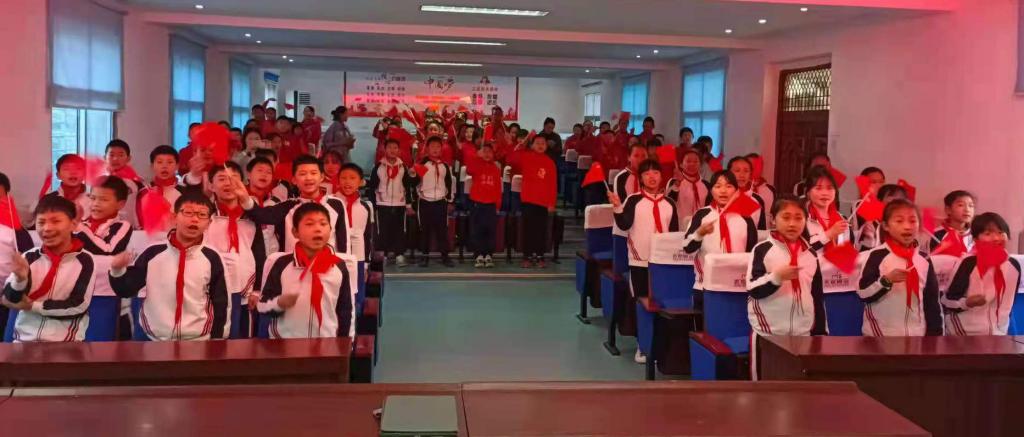 活动中,大学生党员教小学生们演唱经典红色歌曲《红星闪闪》,嘹亮的歌声表达了现场师生深切的爱党情、爱国情。