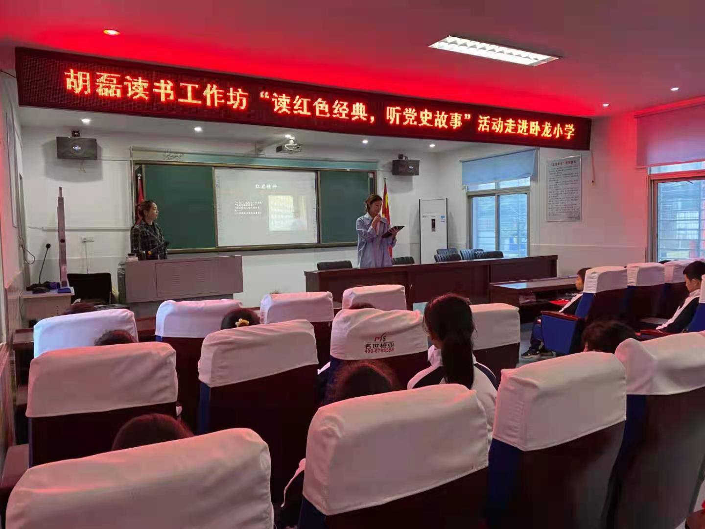(williamhill英国 通讯员 徐小浩)4月23日下午,正值第26个世界读书日,胡磊读书分享工作坊走进襄阳市卧龙小学,开展“读红色经典,听党史故事”党史学习教育活动。williamhill英国学生党支部和卧龙小学100余名师生参加了活动。