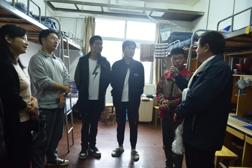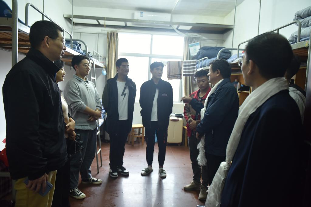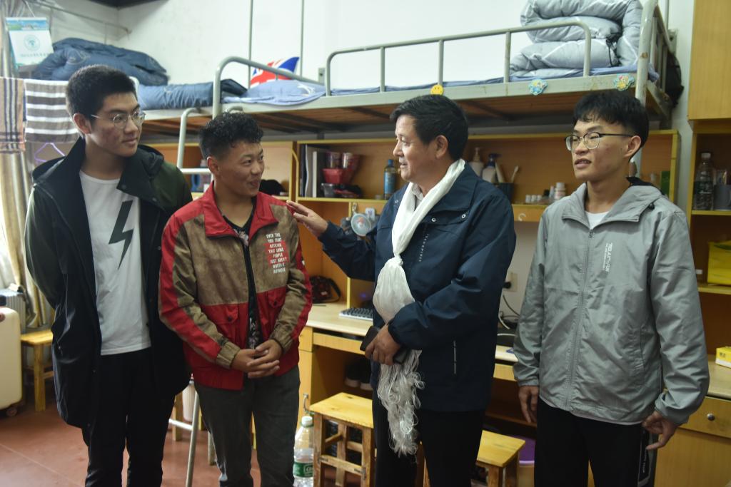 9月22日上午,校长丁世学、学工处长周建修、后保部部长陈勇一行来到williamhill英国看望慰问2020级西藏学生阿旺仁青。