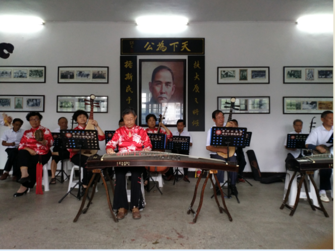 在两位艺术家的带领下,汉水乐府团队全体成员先后参观了老河口丝弦传习所和老河口锣鼓架子,两位艺术家还现场开展教学,就如何学习、弹奏老河口丝弦进行讲解和示范。团队成员还前往老河口市中山公园中山纪念堂内,观看了老河口丝弦演出,15位老艺人分别演奏了《高山流水》、《上楼》、《下楼》、《萧妃舞》、《风摆柳》、《金枝令》等曲目。