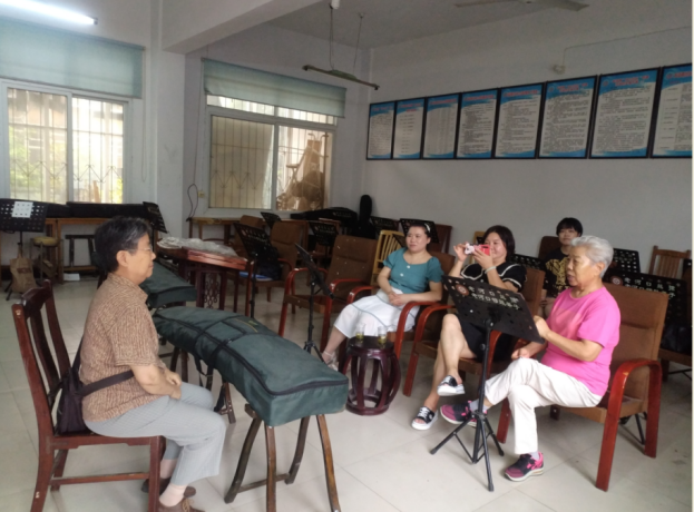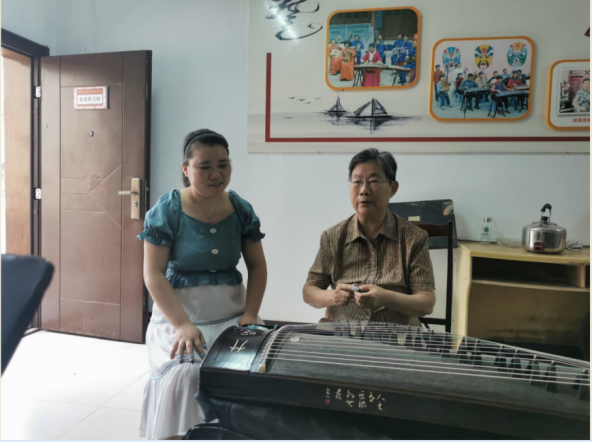 此次活动得到了老河口市非遗保护中心的大力支持,非遗保护中心专门邀请到了非物质遗产的传承人余家冰老师和襄河道坠子代表人物郝桂萍老师两位襄阳市著名的老艺术家作为此次专题调研做讲解和介绍,并与参加调研的老师进行座谈,两位艺术家用丰富的史料和生动的事例和团队成员分享了老河口非遗文化的音乐、曲调、历史渊源,表示希望新一代青年能将非遗一代代传承下去。
