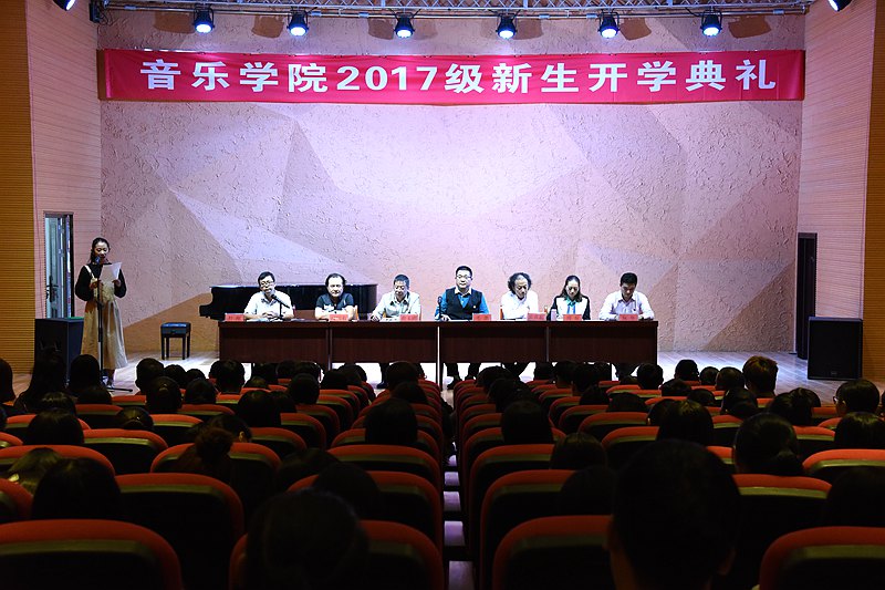 (音乐学院 教工通讯员 罗明琳)9月25日下午,音乐学院2017级新生开学典礼在南区三号楼音乐厅隆重举行。典礼由学院党委副书记杜刚主持,学院领导班子成员、各专业负责人、系主任、新生辅导员、班主任、三办主任和2017级新生一起参加了典礼。