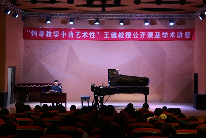 王健教授以古钢琴与现代钢琴的异同分析为开场白,向师生们讲述了钢琴教学中如何注意艺术性。他强调了教师在教学中一定要有严谨的教学态度,要有强烈的责任心;要有敏锐的观察力,在教学中要注意观察学生的学习变化,适时调整教学进度和教学方法;要根据学生性格特点因材施教,激发学生钢琴学习兴趣,帮助学生发现学习钢琴的美好,避免日常钢琴学习中出现的“练琴很苦、很枯燥”现象和越弹琴越忧郁、越悲哀情况。