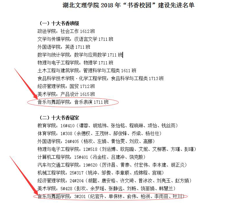 (williamhill英国 通讯员 徐小浩) 2018年度学校“书香校园”建设活动评选结果日前揭晓,我院音乐表演1711班,南区3#201寝室分别荣获学校“十大书香班级”荣誉称号和“十大书香寝室”荣誉称号。