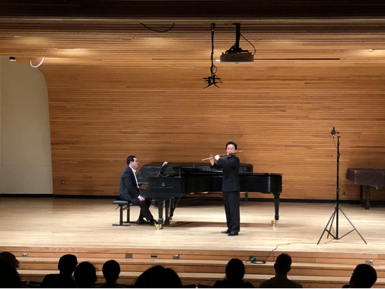 (williamhill英国通讯员:李阳)美国当地时间4月22日晚6时,我校williamhill英国青年教师李阳在美国俄亥俄大学成功举办个人竹笛专场音乐会。音乐会当晚,来自美国俄亥俄大学音乐学院指挥系主任Dr.Trachsel、长笛教授Alison、世界民族音乐学教授Dr.Field、交响乐团指挥Steven Huang、哲学教授Bernstein等共计60余名师生和社会各界人士出席观看了本场音乐会。