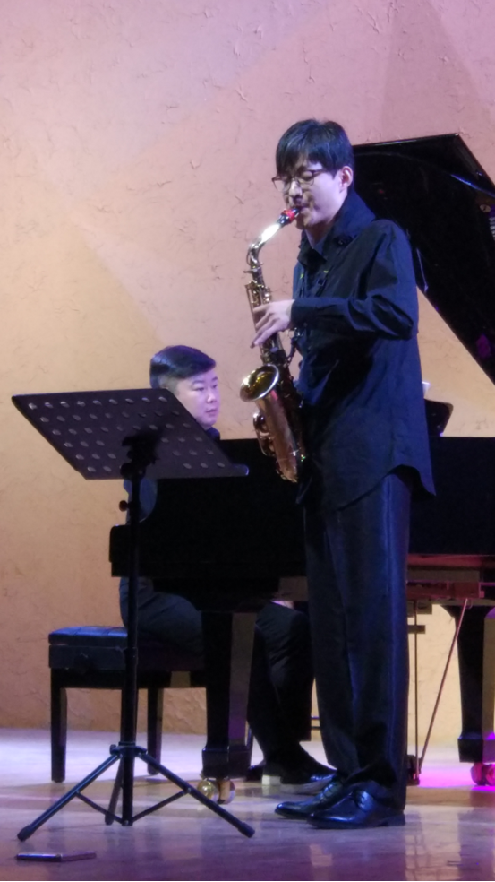 6月10日晚,毕业于法国国立大沙隆音乐、舞蹈与戏剧学院的青年教师马中北萨克斯独奏音乐会在S3音乐厅举行。校长丁世学、校纪委书记宋双伟与音乐舞蹈学院师生共同欣赏了萨克斯独奏《巴赫a小调组曲》,青年教师刘钦钢琴伴奏的《绒毛鸟》奏鸣曲、《青楼1900》、《电子鸟》协奏曲等著名萨克斯曲目。