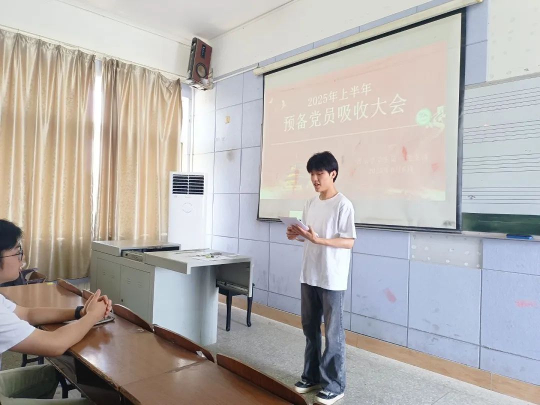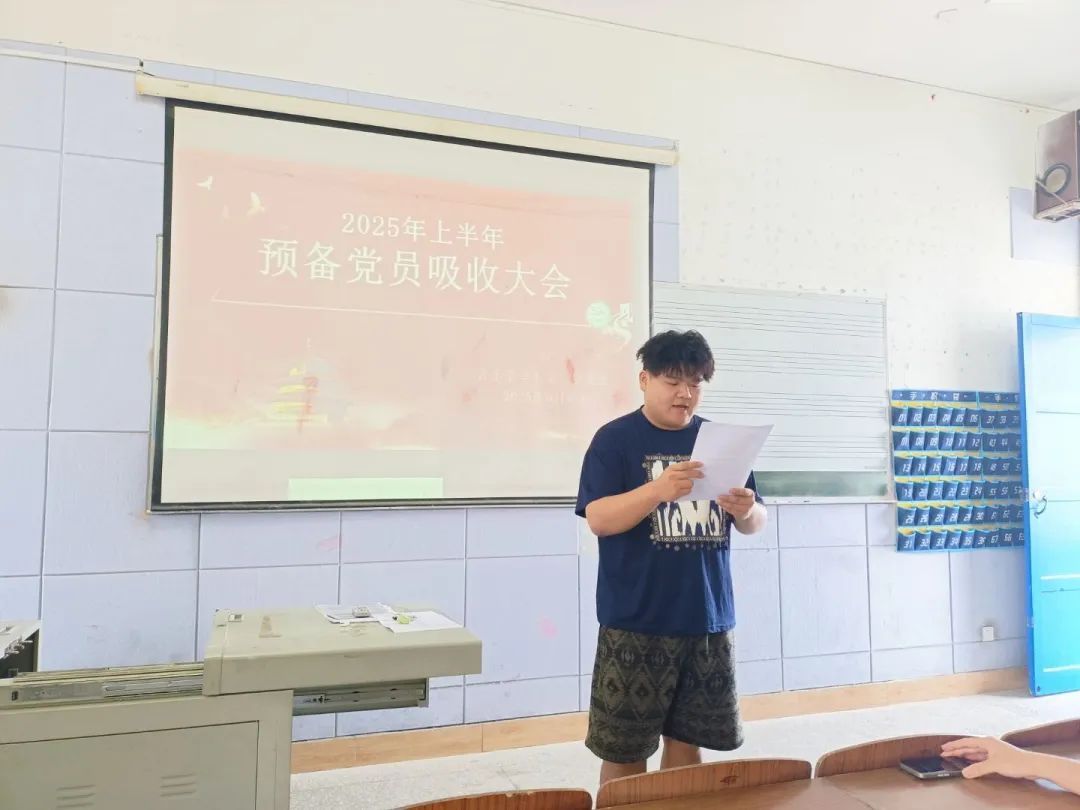 新党员吸收阶段,8名发展对象宣读入党志愿书,表达入党决心,回顾对党的认识过程与培养考察期成长。入党介绍人肯定其表现,党员讨论认可后,无记名投票通过,8名发展对象成为中共预备党员,并面向党旗庄严宣誓。