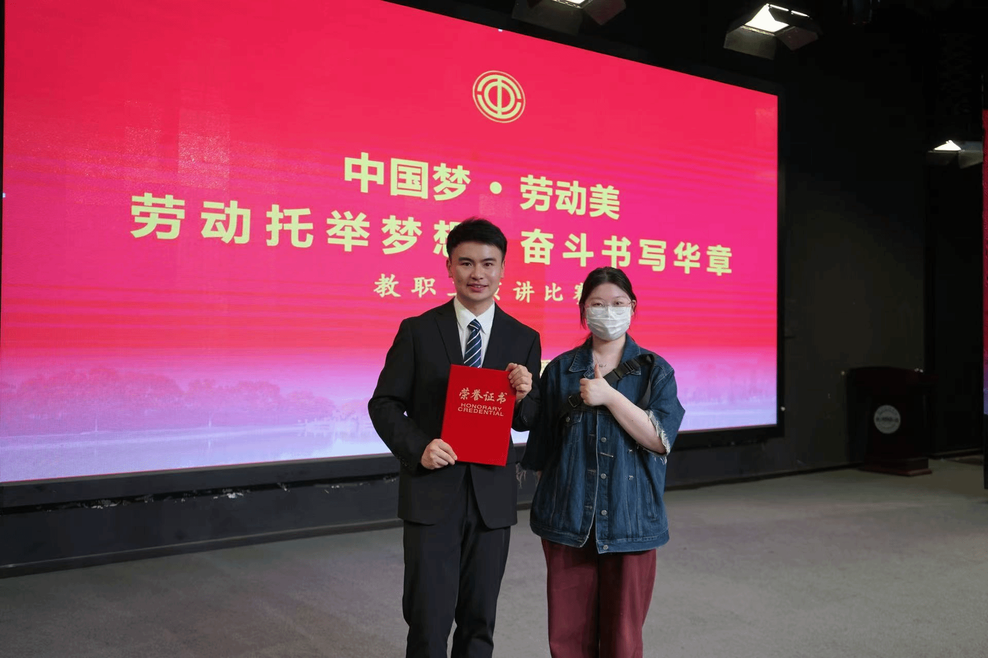 (通讯员 陈庚)2025 年 4 月 29 日,学校 “中国梦・劳动美” 教职工演讲比赛在文学传媒学院演播厅圆满落幕。我院陈庚老师以《支教心不怠 奋斗传大爱》为题的精彩演讲,凭借深刻的主题表达、生动的案例演绎和精湛的舞台表现力,从全校 19名参赛教师中脱颖而出,荣获一等奖。