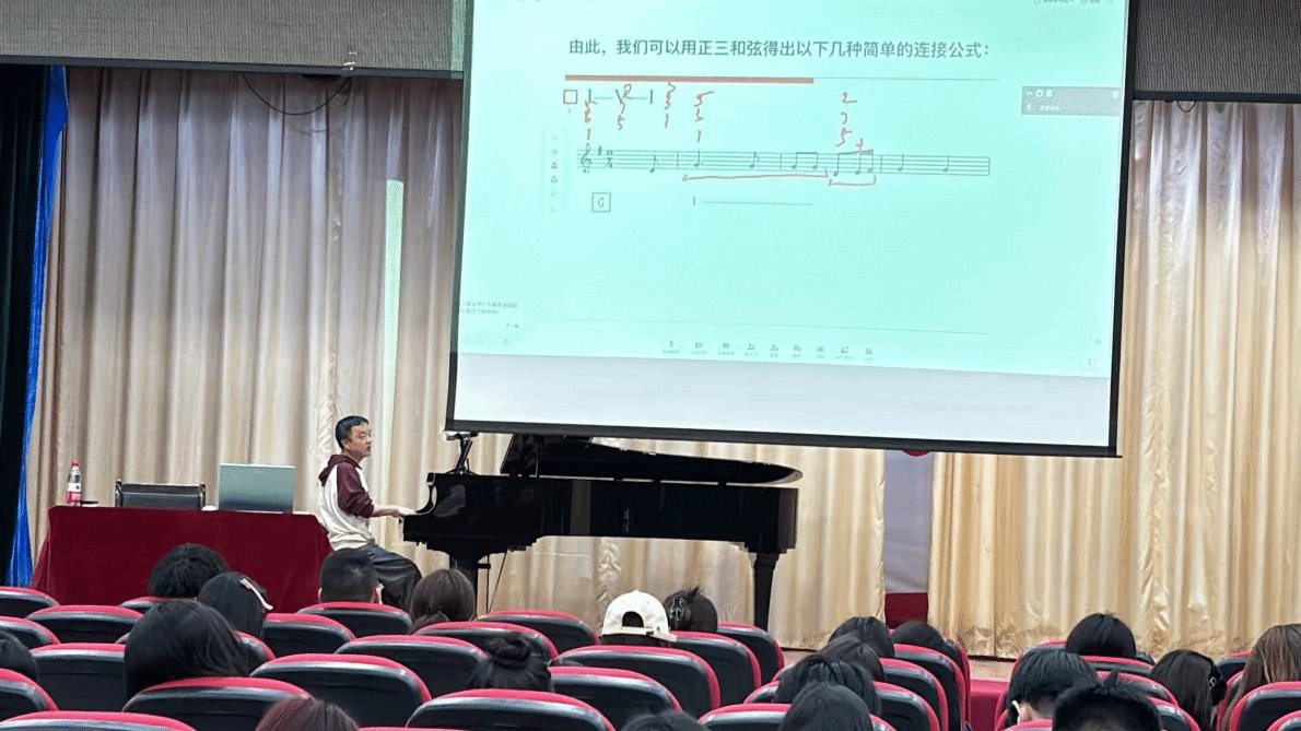 张力副教授在williamhill英国多功能厅呈现《多声部音乐的和弦编配与运用》示范课,通过“理论图谱-经典解码-创编实践”三阶教学模式,不仅系统阐述了和弦的功能分类、运用技巧及连接理论逻辑,还通过实例分析与实践操作,让学生们亲身体验到了和弦编配的魅力与奥秘,收获颇丰。