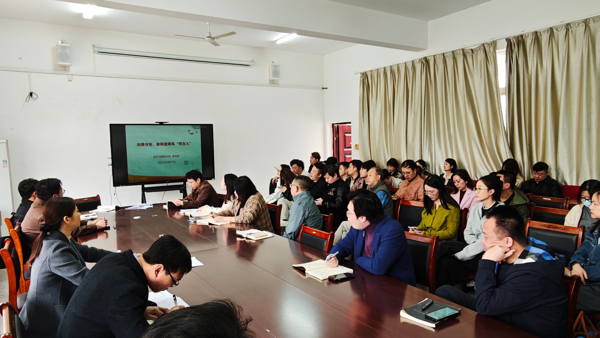 (通讯员 廖星铭)为深入贯彻落实新时代教师队伍建设要求,强化师德师风建设,引导教师坚守教育初心、恪守职业规范。3月27日下午,学院党委书记姜俊毅以“知规守矩,做师德师风的‘明白人’”为主题,为全院教职工举办了一场深刻而生动的师德师风专题讲座。学院全体教师及行政人员参加学习。