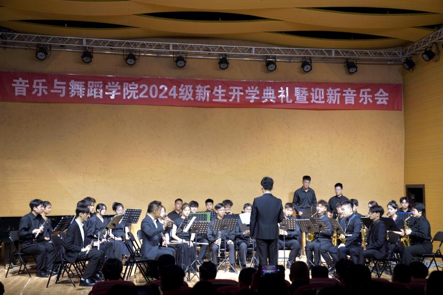 开学典礼结束后,学院精心准备的迎新音乐会随即上演。学校大学生管乐团带来的《歌剧魅影组曲》和《迪士尼动画电影组曲》让人沉浸在神秘与浪漫的世界中,钢琴四手联弹《斯拉夫舞曲》让人感受古老而又充满活力的文化气息;古筝、二胡、钢琴、长笛、小提琴、萨克斯等多种中西方乐器轮番奏响。