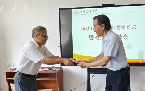 在随后的教师座谈会中,杨秋仪教授语音哽咽的表示,这次捐赠的222册书,是他从青年学生时代直至退休近40年来收集、收藏的珍贵典籍,涉及中西方音乐史、音乐理论基础、音乐工具书等,希望这些书籍能够在今后学院的音乐教学科研中继续发挥育人传承的功效。
