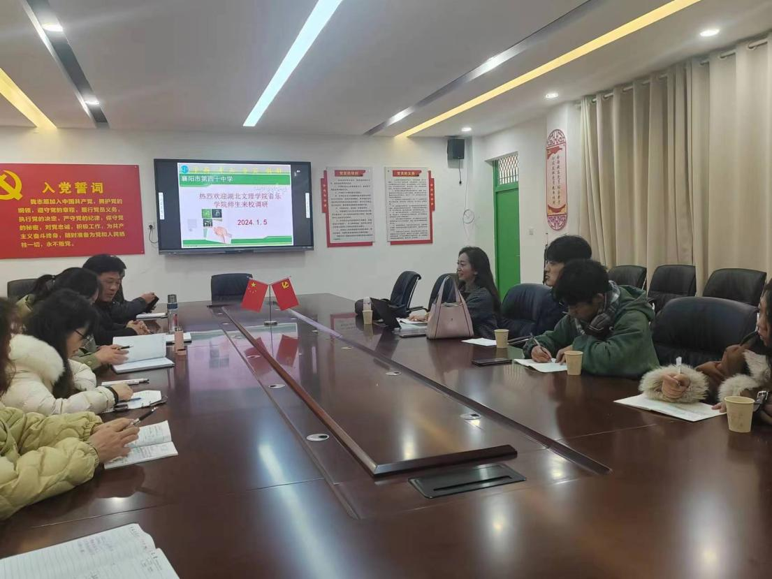 (通讯员 周琼)新年伊始,2024年1月5日上午williamhill英国周琼副教授组队应届毕业论文指导学生,一行四人赴襄阳市第四十中学开展关于“高校服务地方中小学校基础音乐教育”课题调研活动。此行调研选择“城乡结合初小一体”襄阳市第四十中学作为考察对象,旨在深入了解地方社会特殊地域基础音乐教育办学特色及其发展现状。