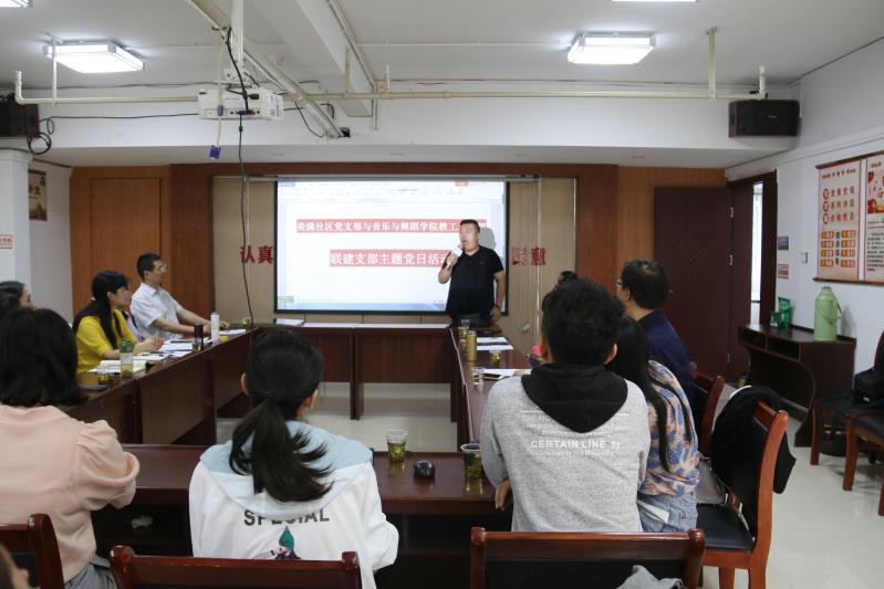 美满社区党支部书记冯莹、音乐舞蹈学院党委书记姜俊毅分别就特别支部主题党日活动做了总结发言,强调开展特别支部主题党日活动是贯彻落实支部条例的实际行动,是发挥高校社会服务职能的有效拓展,是加强党员党性锻炼的积极探索,要进一步完善活动机制,丰富活动形式,深化活动效果,真正发挥主题党日在广大党员加强党性锻炼的主渠道作用。