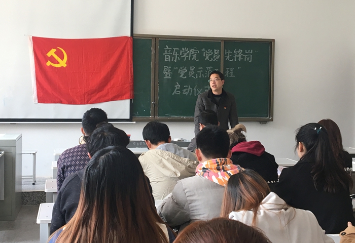 (音乐学院 学生通讯员 鲁松 审稿人 龚玲玲)为进一步深入开展“创先争优”,推进“两学一做”教育实践常态化,贯彻落实校党委《关于开展创建“党员先锋岗”活动的通知》精神,2017年3月8日中午,音乐学院在南区7栋105教室开展了音乐学院“党员先锋岗”暨“党员示范工程”创建工作启动仪式。会议由院学生党总支副书记任娅男同志主持,全体在校学生党员及团学会主要干部参会,音乐学院党委副书记詹玉刚、杜刚,学工办龚玲玲、院团委李世森等老师出席本次会议。