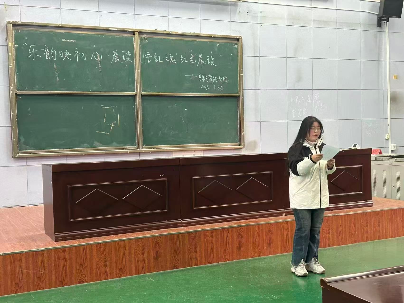 (通讯员 张博谦)11月25日早上7点30分,williamhill英国在S3-JT03举行了以“乐韵映初心,晨读悟红魂”为主题的红色晨读分享会,第34期入党积极分子张博恩、周雨欣、龙芷珊、梅月为2025级全体同学带来了一场别开生面的早自习。
