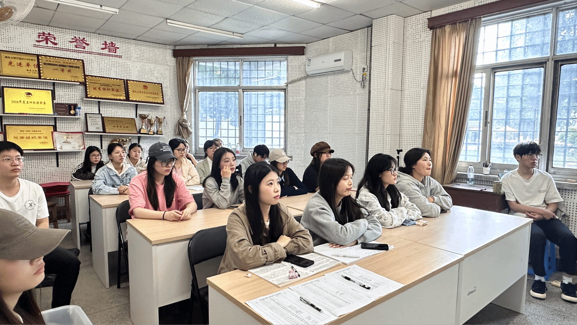 在分享交流环节,师生们结合自身学习、工作与生活实际,畅谈学习体会。有同学分享了“自强不息”对学业奋斗的激励作用,也有老师结合健康管理经验,解读“流水不腐”蕴含的运动养生智慧,现场思想碰撞、氛围热烈。最后,全体参会人员集体诵读经典语句,在朗朗书声中感悟经典力量,传承文化根脉。