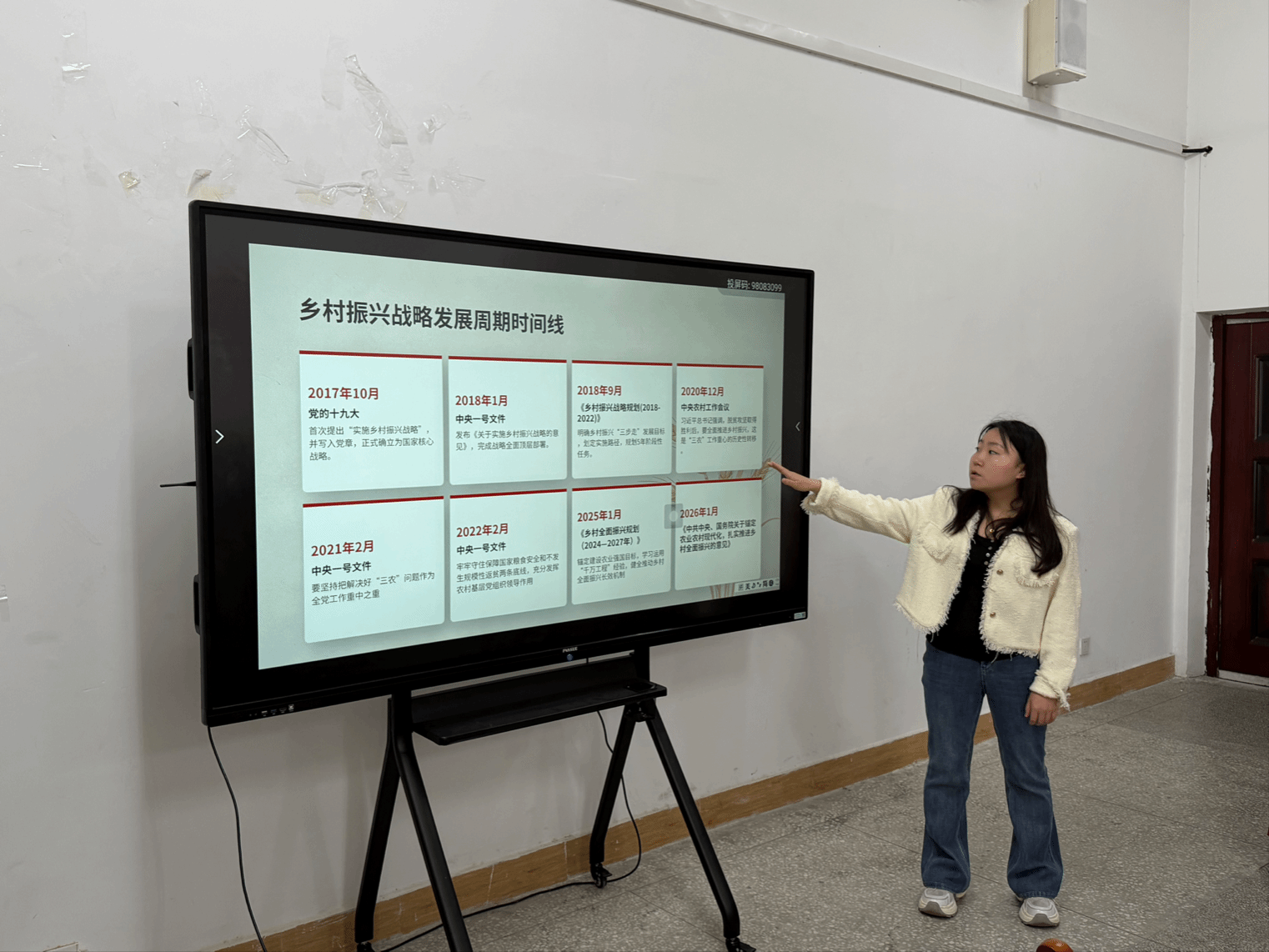 授课过程中,陈芃围绕产业、人才、文化、生态、组织五大振兴板块,深入剖析新时代党员的核心担当与行动方向。课程结合各地乡村振兴鲜活实践案例,讲述黄文秀、李娜倮、姜丽娟等优秀共产党员扎根乡土、躬身实干、无私奉献的先进事迹。结合我院艺术专业特色,重点阐释文化振兴在乡村建设中的关键作用,号召学子立足音乐舞蹈专业所长,以文艺赋能乡土文化传承,用艺术力量助力乡村精神文明建设。