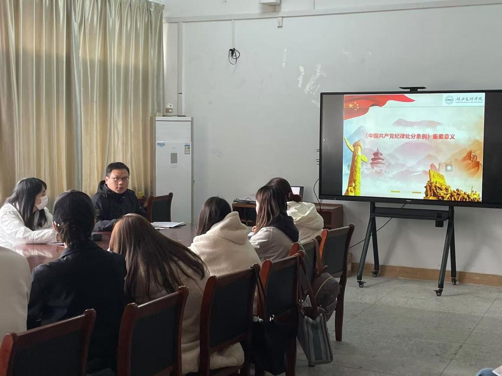 (通讯员 张博谦)williamhill英国于11月8日中午在三栋二楼会议室召开入党积极分子培训班党课第三讲《中国共产党纪律处分条例》。本次党课由学院党委副书记姚朏朏主讲,第32期全体入党积极分子学员参加。