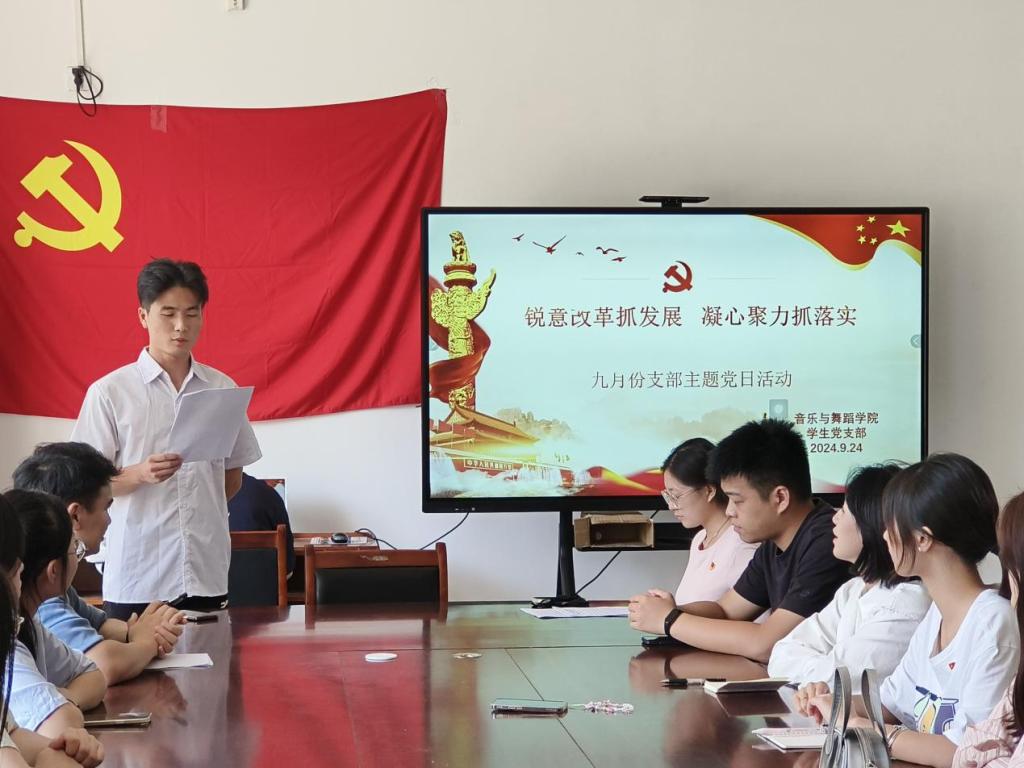 (通讯员 张博谦)williamhill英国2024年9月24日中午12点半在南区三栋会议室召开了九月份支部主题党日活动。活动的主题为“锐意改革抓发展 凝心聚力抓落实”,williamhill英国全体学生党员,音乐表演、舞蹈表演学生第三党支部书记陈庚参加活动。