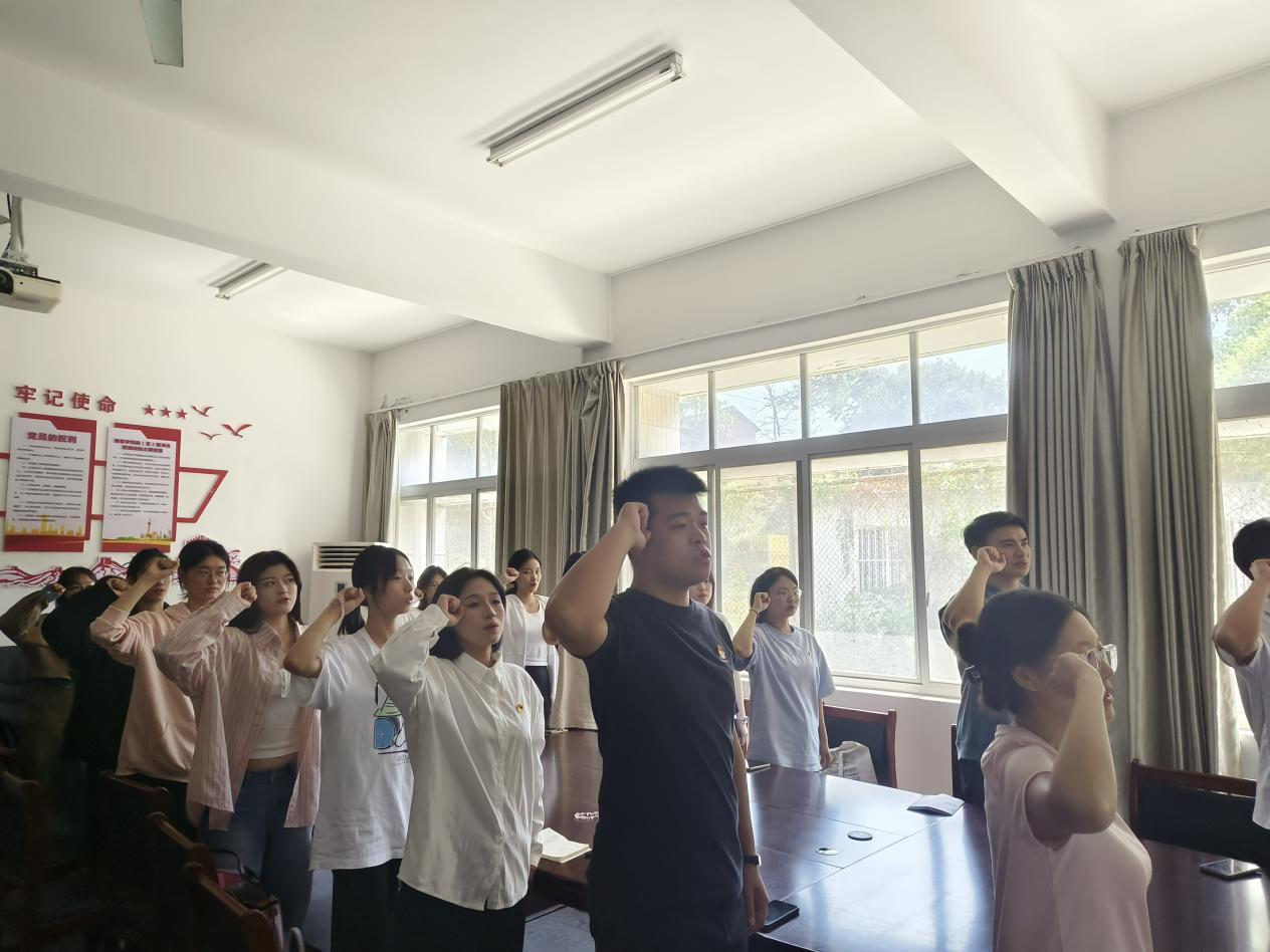 活动伊始,全体成员齐唱国歌,张益航同志带领大家重温入党誓词。