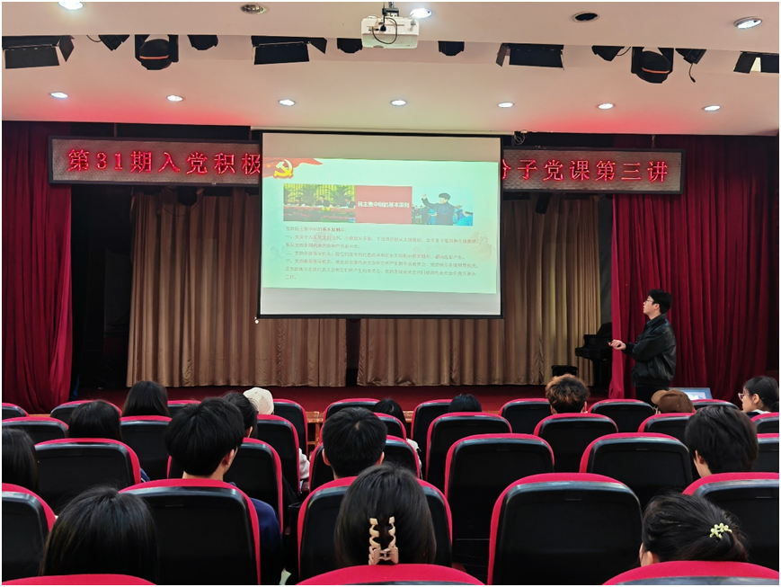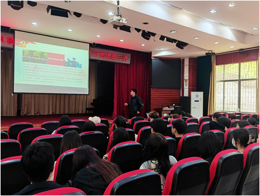 张博谦分别从党的组织制度和党的纪律两大方面,带领同学们认真学习了党章相关内容和要想成为一名合格的中国共产党员应该如何规范自身行为标准。