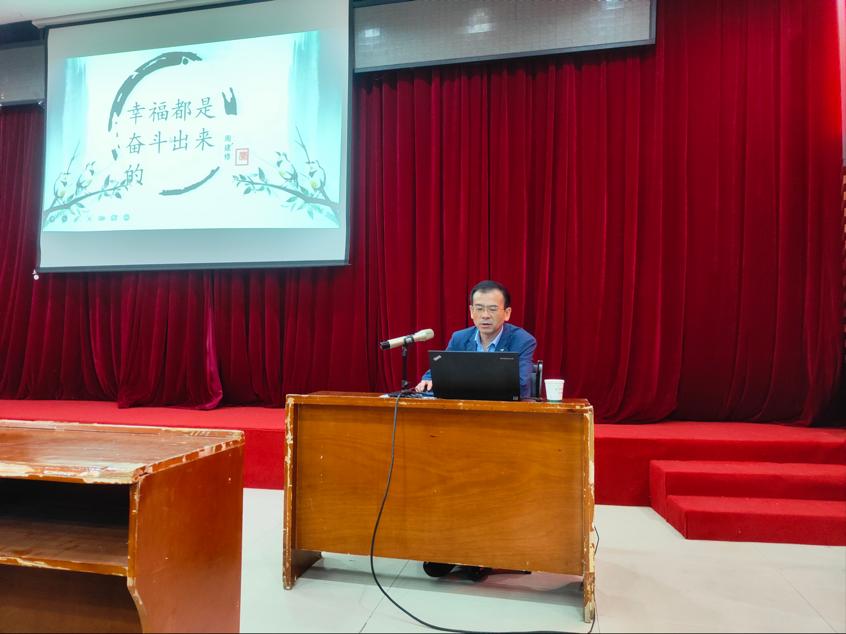 讲授中,他还介绍了中国共产党的“幸福”是什么,共产党人的幸福在于干事创业;在于正直做人;在于为人民服务;在于清廉为官;在于身体健康。他强调,奋斗是每个党员应该要必备的品质和修养,要真正的了解中国共产党全心全意为人民服务的宗旨,要培养共产党人信仰的定力,依靠信仰成就幸福,别忘了为什么出发,始终坚持初心不忘使命,为实现中国梦而努力,为实现中华民族伟大复兴而奋斗!