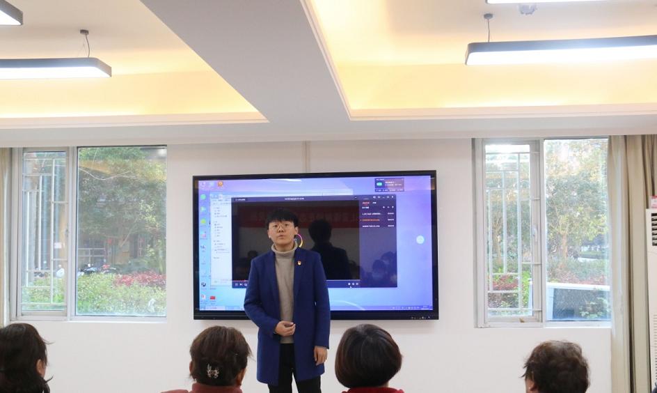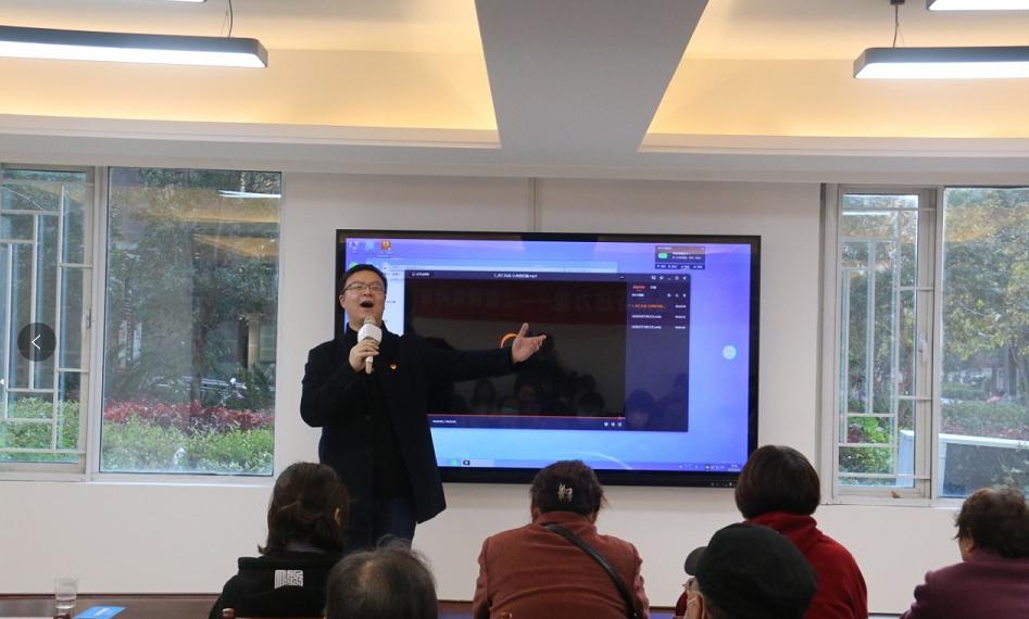 教工二支部书记任童以《学习贯彻十九届六中全会精神——走好新时代长征路》为题,从十九届六中全会的背景、历史意义以及新征程对中国共产党提出的新要求等方面为社区党员和师生作宣讲报告。