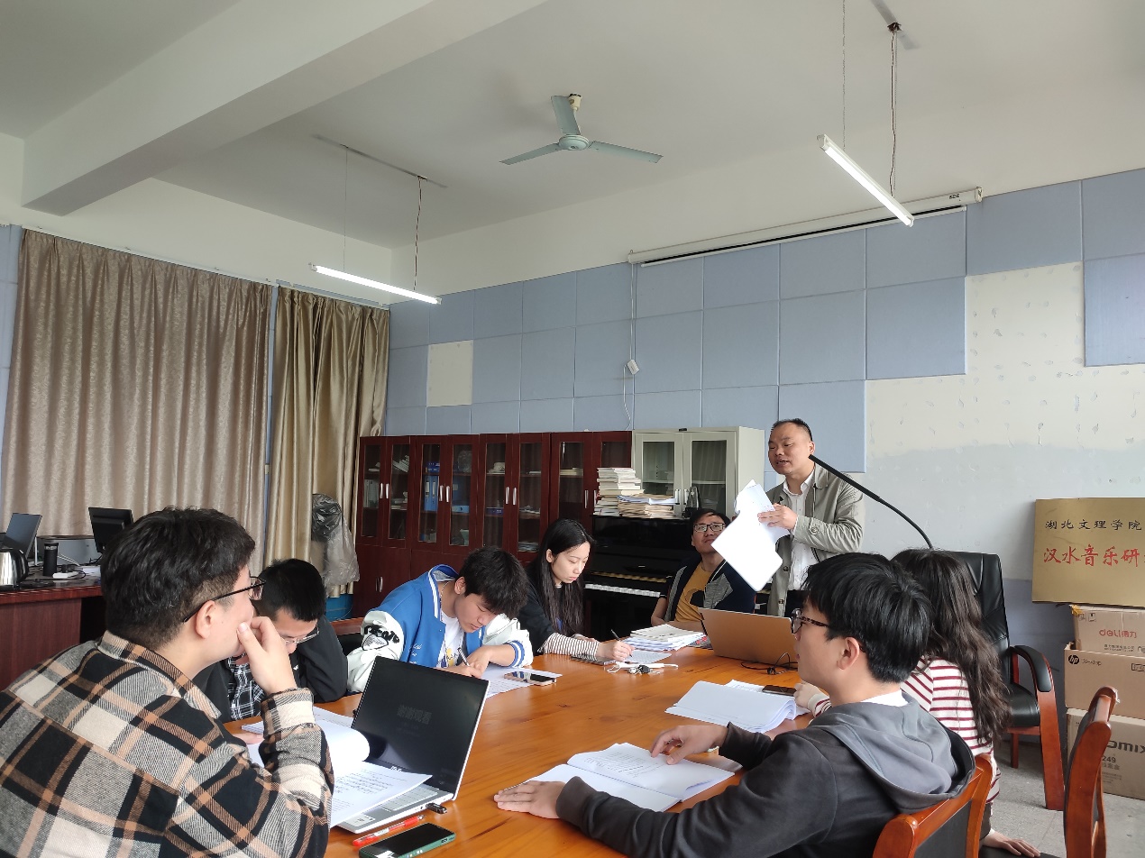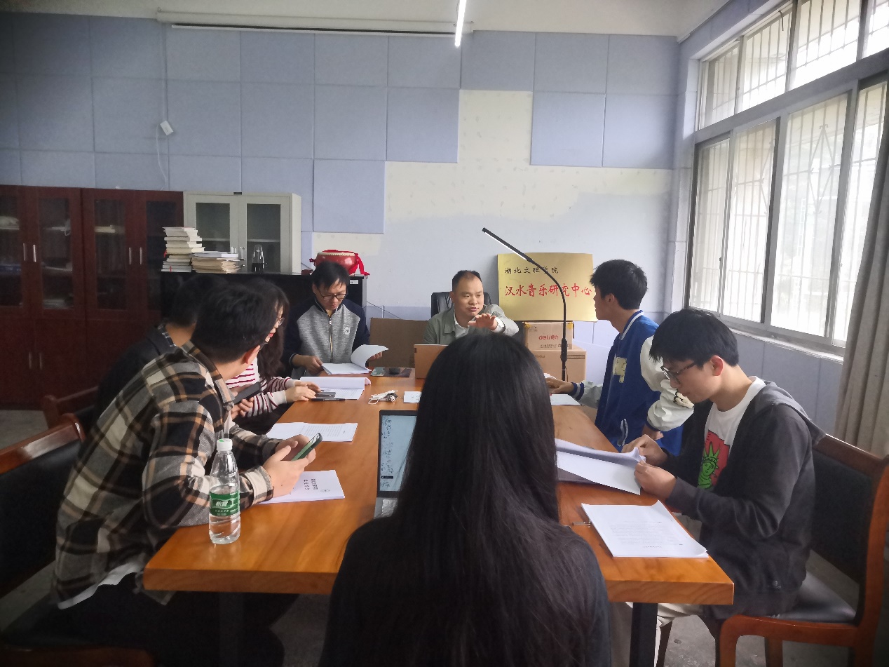 本次预答辩活动有六位学生参加,分别是储陈惠子:《郧阳民歌调查研究》、刘卓峰:《坚守亦艰守——宜城市襄阳花鼓戏剧团调查研究》、胡江涛:《保康民歌调查研究》,李星星:《最后的告别:陇西县丧葬仪式音乐表演民族志研究》、王云龙:《巴蜀之画——四川民歌主题钢琴组曲》音乐分析、计金刚:《郧阳吹打乐调查研究》,六位学生从选题缘由、价值意义、研究方法、论文内容等方面分别作了陈述汇报。