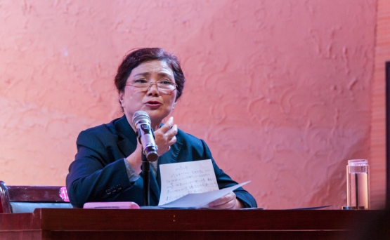 讲座以声乐作品为例,对在舞台表演艺术中的形、神、情做以详细的讲解,并亲给学生示范。已古稀之年的校毅之老师用实际行动来向师生展示了一位声乐老艺术家对音乐的热爱以及声乐表演的自我修养。