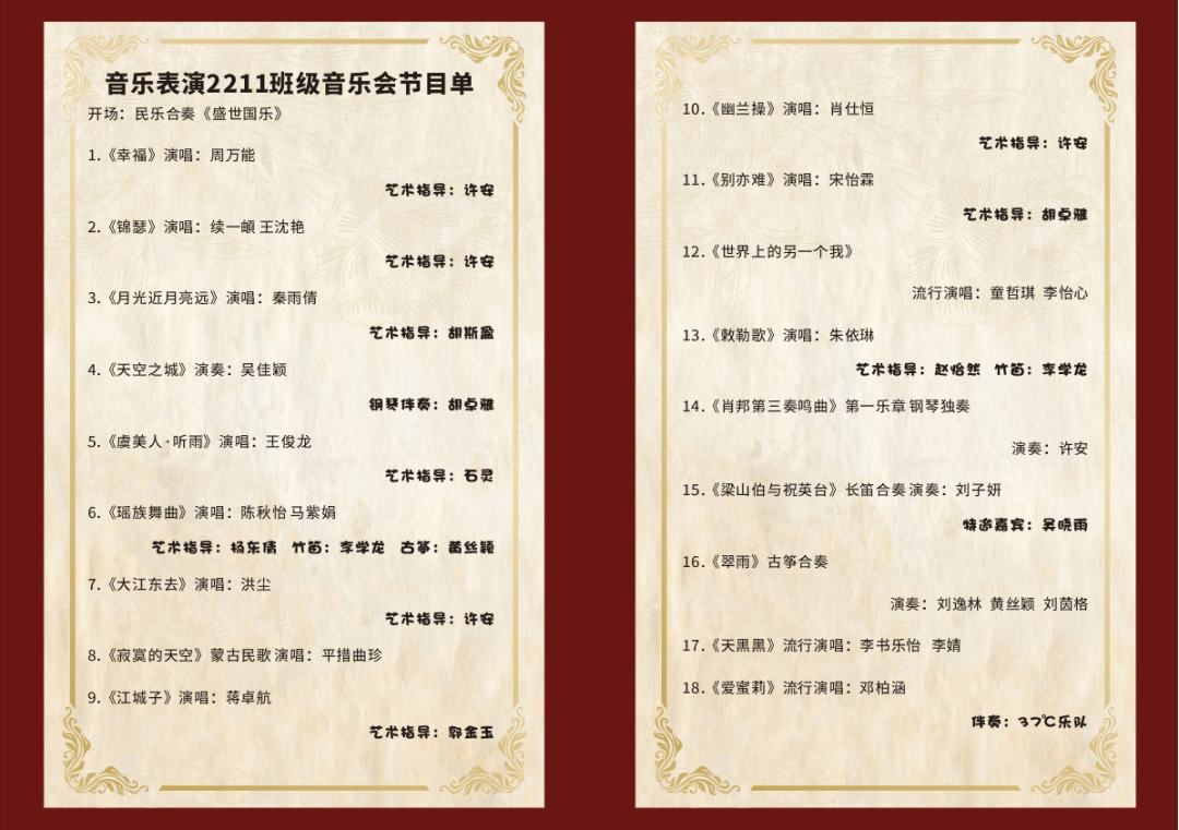 本次音乐会主题为“冬日樂章”,由音乐表演2211班全体同学联袂出演。