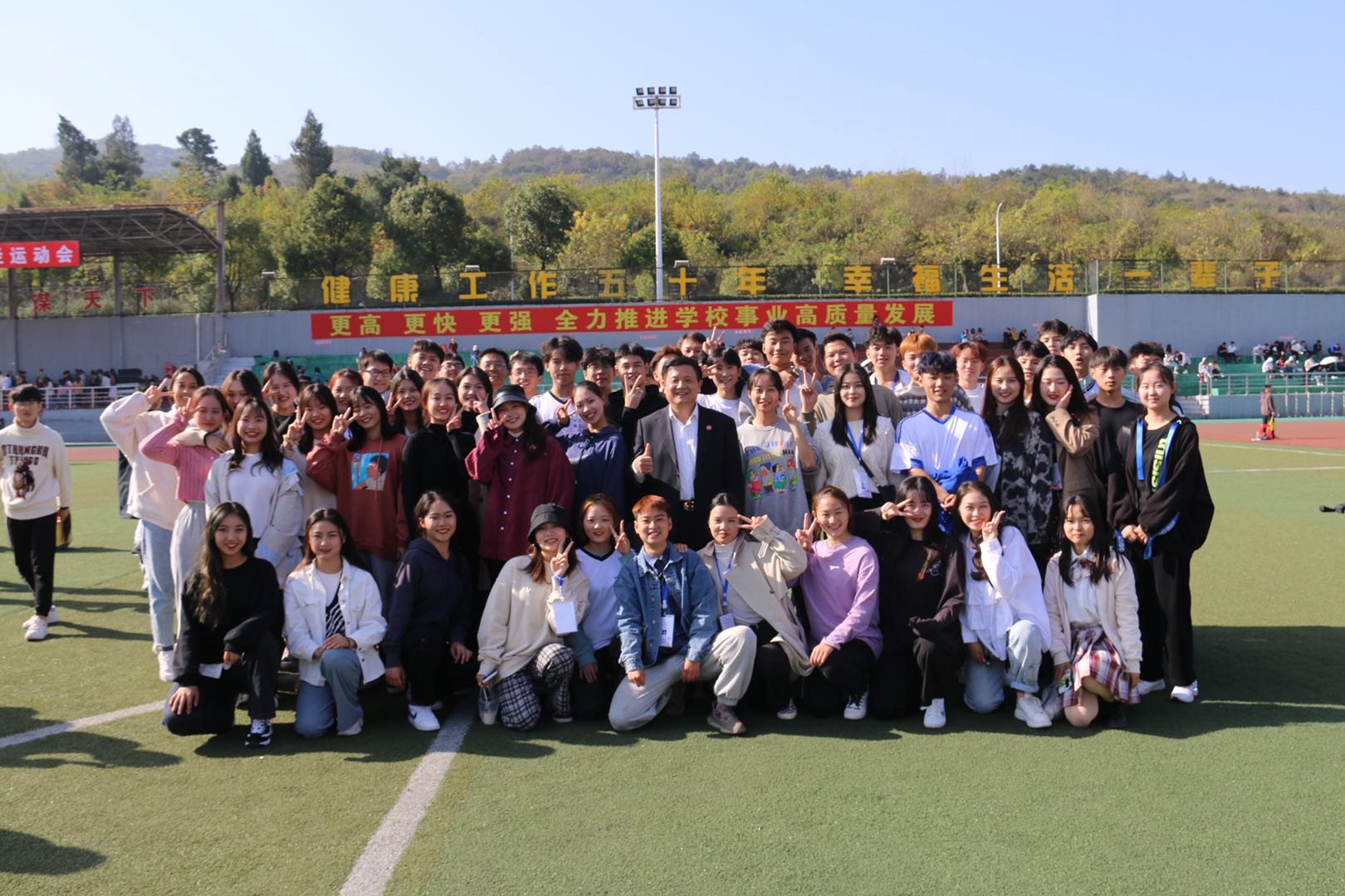 (赛后校长丁世学与参赛运动员合影留念)