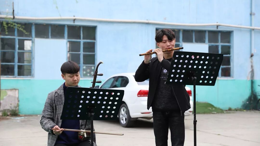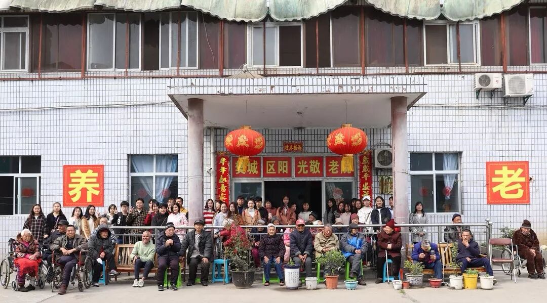 为配合老人们的休息时间,两院志愿者协商提前从学校出发,于下午一点抵达敬老院汇合。静谧的午后,志愿者们走进这所老人之家,只见屋子里的老人们或推着轮椅,或颤颤巍巍地在院长及护工的帮助下,排成三排坐在在大门口,好奇地看着志愿者们往来布置表演场地。