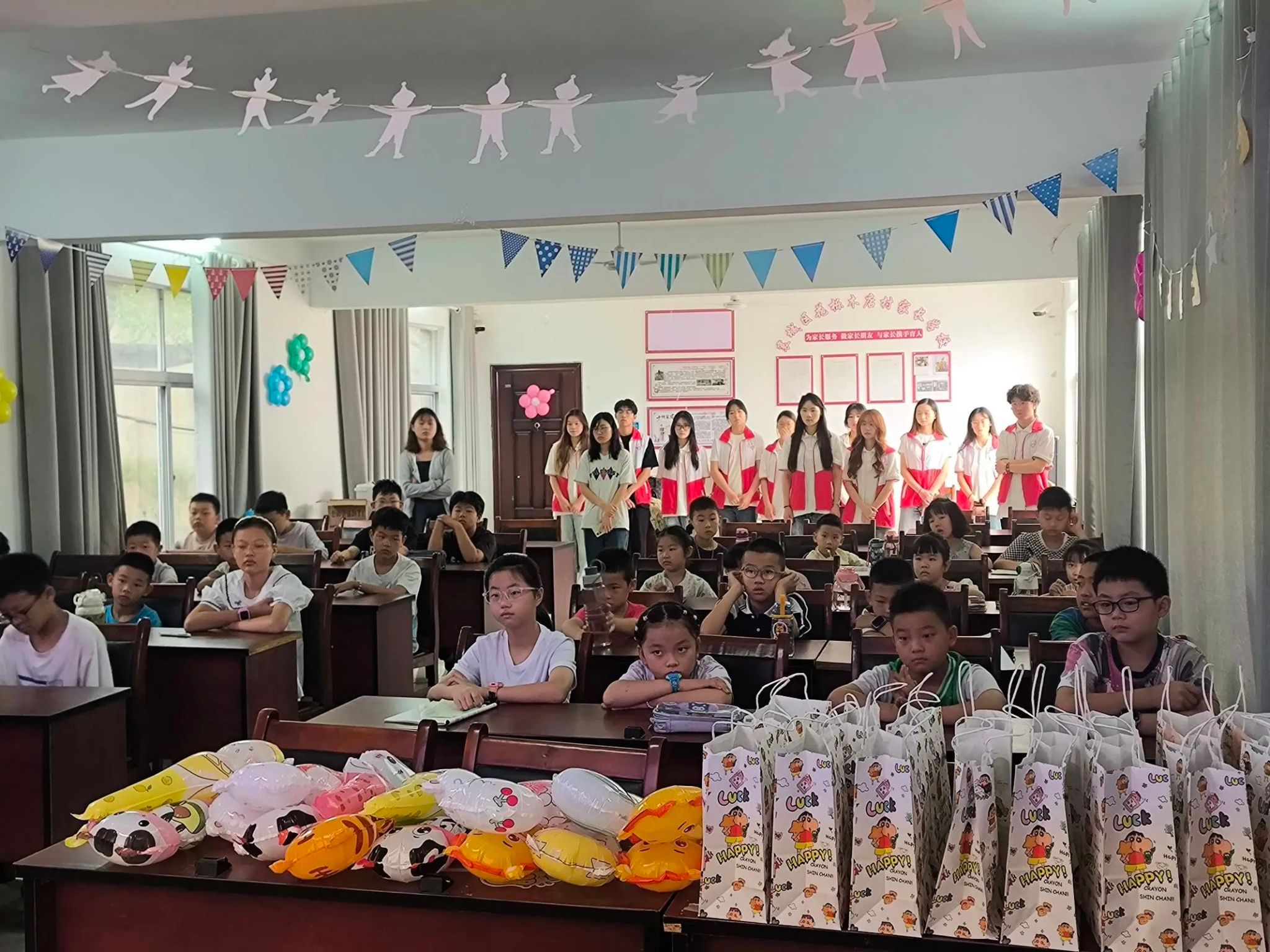 此外,志愿者为当地儿童准备了定制礼包,内含彩笔、艺术绘本、音符笔记本等物品。这些礼物根据前期调研的儿童喜好配置。仪式尾声,志愿者以空地为课堂,通过拼音歌谣教学,开展艺术启蒙活动。