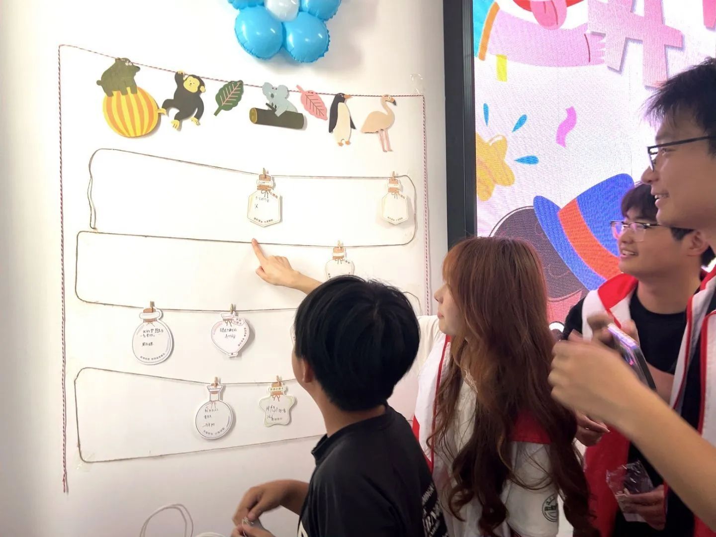 仪式现场设置“梦想生长区”,志愿者提前布置好装饰着动物挂饰的心愿墙。仪式结束后,当地儿童纷纷在心愿墙上留下心愿,如学习吉他、舞蹈等。志愿者表示,将在后续活动中回应这些需求。在教室分会场,志愿服务队利用仪式间隙开展课业辅导,为孩子们解疑释惑。