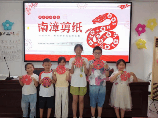 南漳剪纸作为湖北省非物质文化遗产,承载着荆楚大地的民俗记忆与艺术智慧,以简练的线条和饱满的构图展现着独特的地方特色。活动开始,志愿者们以图文并茂的形式讲解南漳剪纸的民俗渊源。随后,在志愿者指导下,孩子们动手学习剪纸技艺。实践中,孩子们不仅领略了南漳剪纸的艺术魅力,也潜移默化地接受了传统美学的滋养。