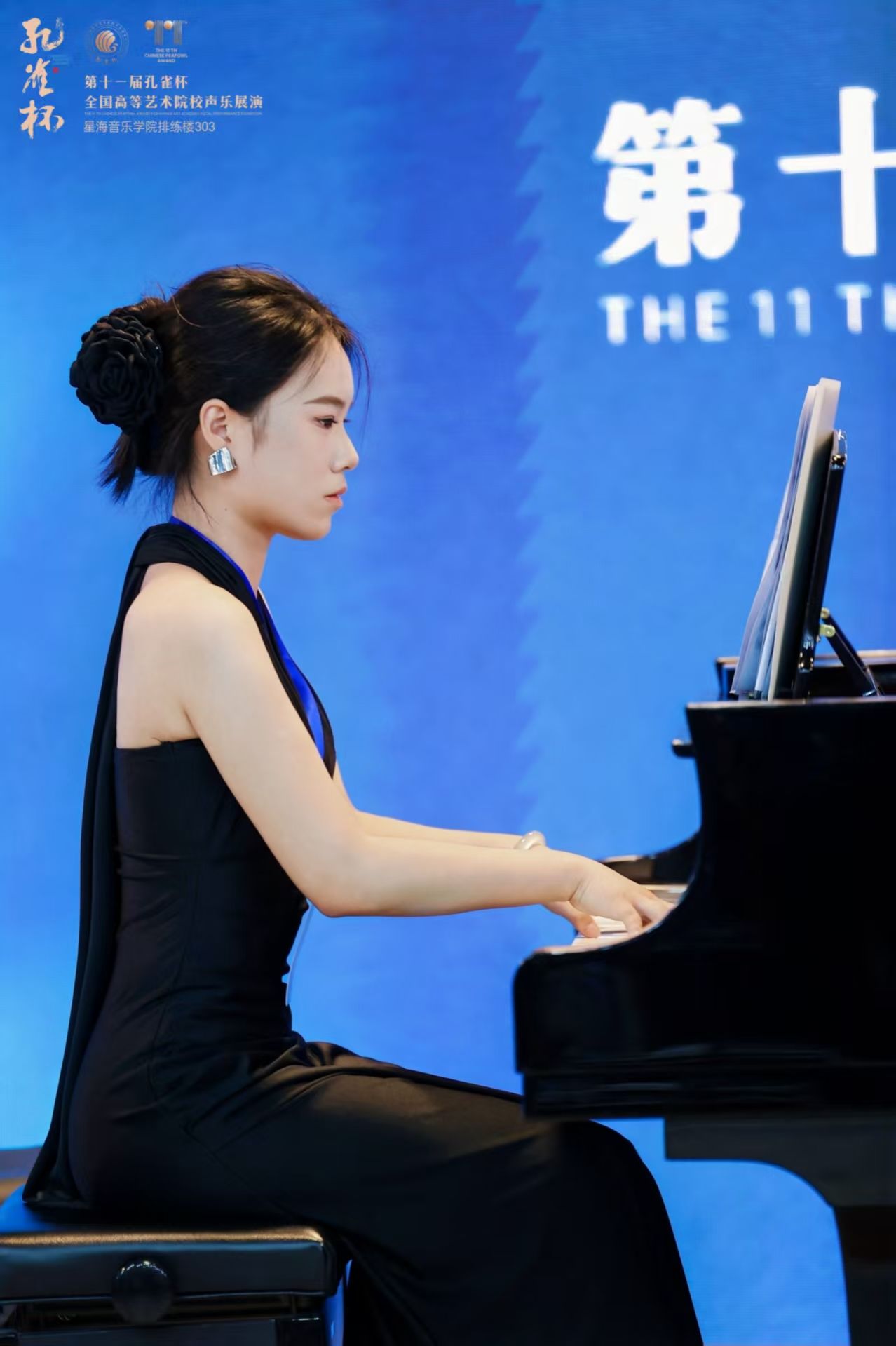 在综合师范院校本科生民族声乐组的比拼中,音乐学 2112 班廖宇兰同学表现亮眼。她带来的展演曲目《绣荷包的俏妹子》韵味十足,总展演曲目《来生来世把你爱》情感饱满,最终荣获铜孔雀杯。这一成绩的取得,离不开指导老师王宏丽的悉心指导。