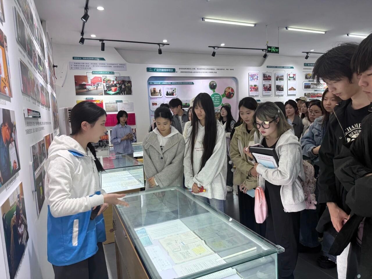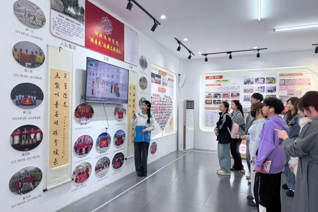 展厅内,讲解员结合展板内容,为同学们细致梳理了格桑花赴藏支教团队的发展脉络。从2014年首批队员毅然奔赴西藏琼结县,每一段文字、每一张照片都诉说着支教队员的初心与坚守。