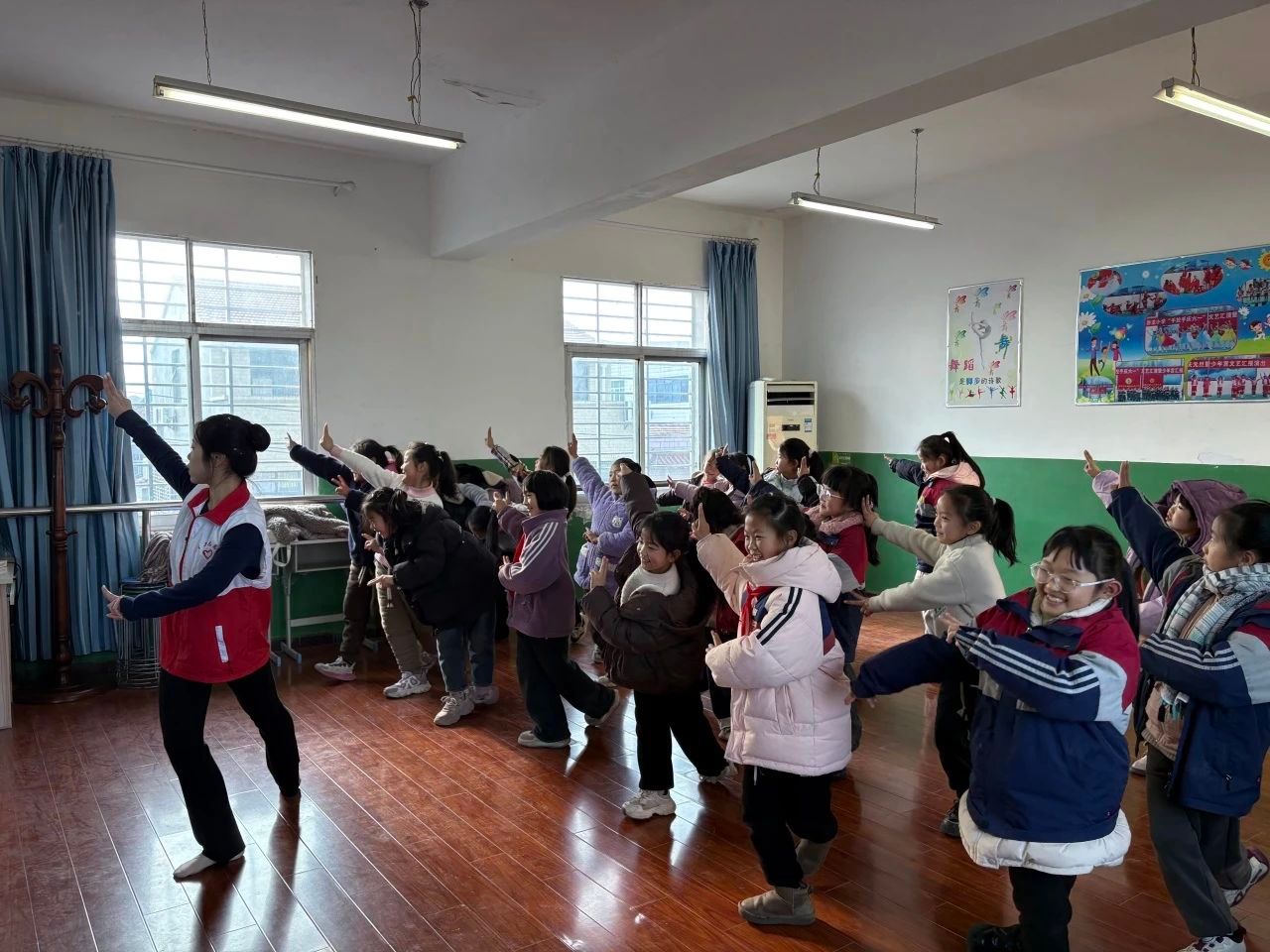 课堂上,志愿者从简单的拉伸动作教起,帮助孩子们活动身体、培养身体协调性。随后,分解舞蹈动作,逐一带孩子们练习,悉心纠正不规范之处。志愿者们用活泼的语言、生动的示范,激发孩子们的兴趣。孩子们目不转睛,学得有模有样,小小的身躯随节奏律动 ,脸上洋溢着灿烂笑容。