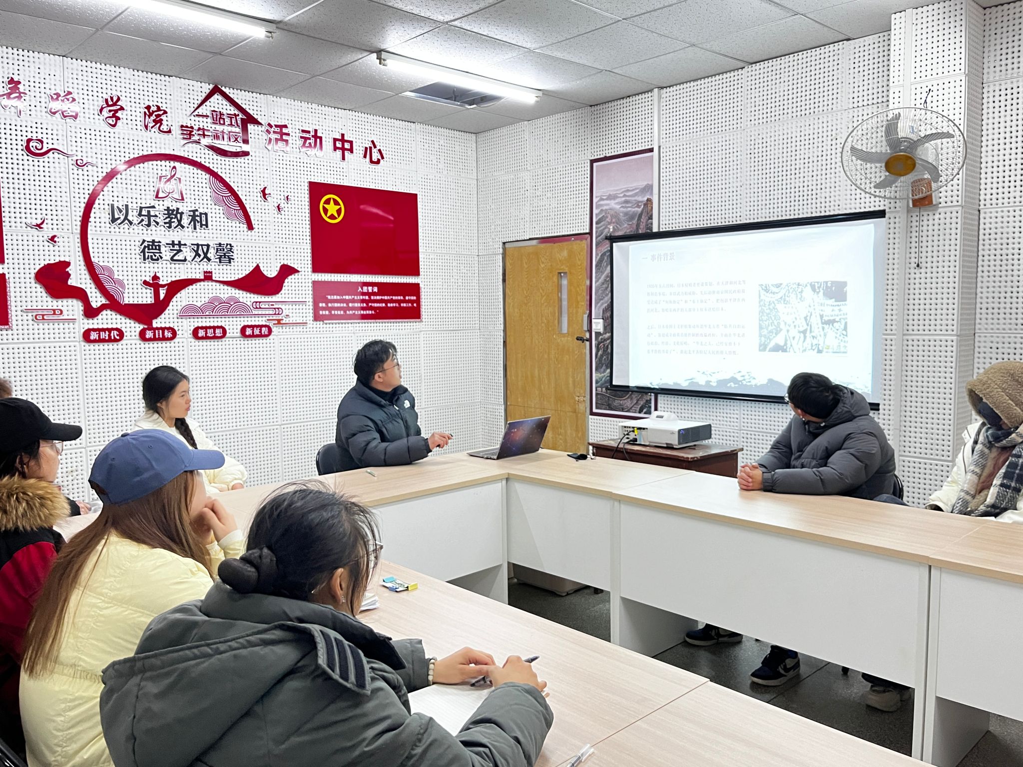 在交流互动环节,张博谦鼓励同学们积极分享自己对一二・九运动的理解与感悟。同学们纷纷踊跃发言,各抒己见。有的同学表示,一二・九运动中青年学生们的爱国情怀和社会责任感令人动容,他们在国家危难关头挺身而出,用青春和热血书写了壮丽的篇章,这种精神在当今时代依然熠熠生辉,激励着自己要珍惜来之不易的和平环境,努力学习专业知识,提升艺术修养,为祖国的文化艺术事业发展贡献力量;有的同学则从专业视角出发,谈到艺术在不同历史时期都具有凝聚人心、鼓舞士气的强大力量,它们不仅是一种艺术表达,更是激发民族斗志的号角。