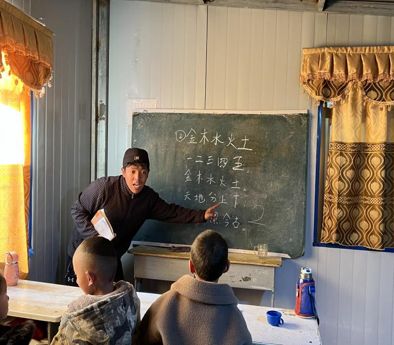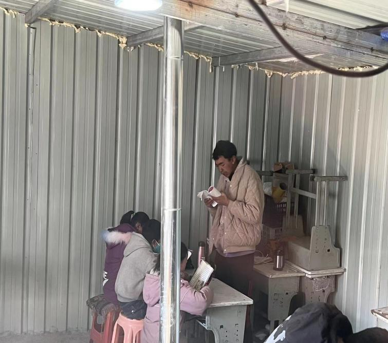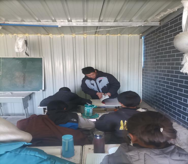 1月7号补习班正式开班了,他们一共有8位老师,34名学生 ,学生分别从一年级到初三。补习班主要教授五门科目,分别是语文、藏文、数学、英语、道德与法治,三位理科老师负责教授五年级到初三的课, 四位文科老师负责教授教一到四年级,而他主要负责所有师生的安全以及上课管理。