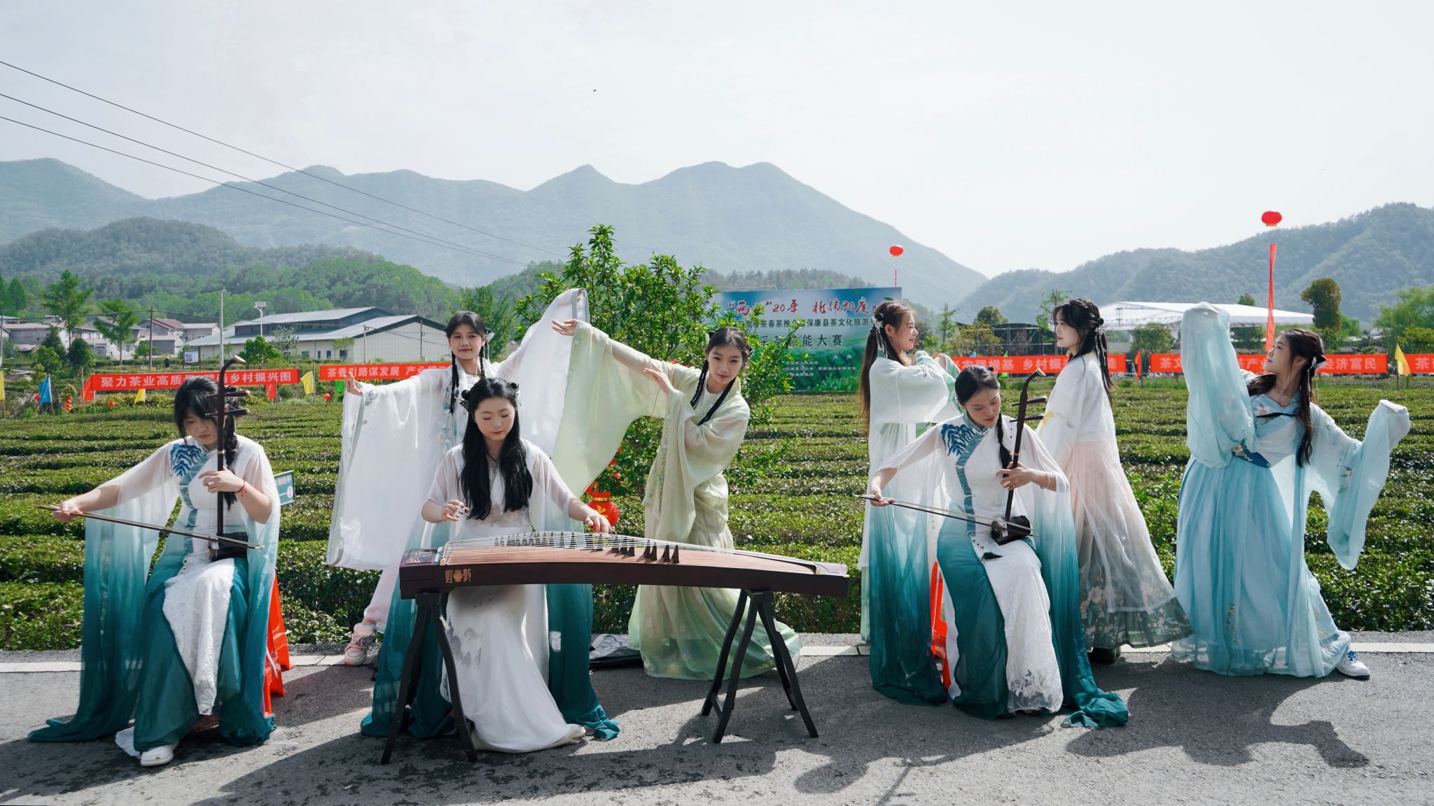 开幕式现场,舞蹈表演专业学生以灵动舞姿,生动再现了茶农采茶、制茶的辛勤场景,展现出保康茶文化的深厚底蕴。与此同时,传统民族乐器组合演奏的悠扬旋律,与茶园自然风光相互映衬。